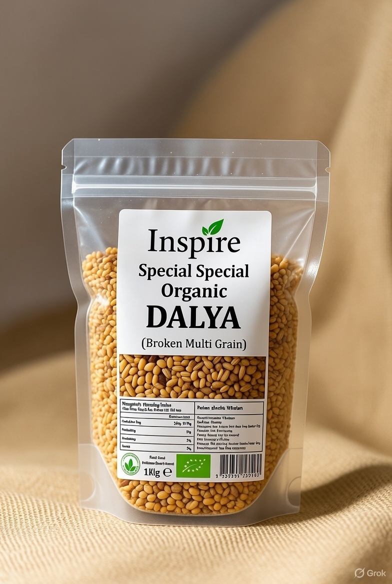 Inspire Special Organic Multi-Grain Dalya is a nutritious blend of carefully selected organic grains, hygienically cleaned and coarsely cracked to deliver superior taste and balanced nutrition. This wholesome multi-grain combination provides higher fiber, essential minerals, and sustained energy, making it an excellent choice for a healthy, active lifestyle. Suitable for both sweet and savory dishes, it is easy to digest and ideal for everyday meals.